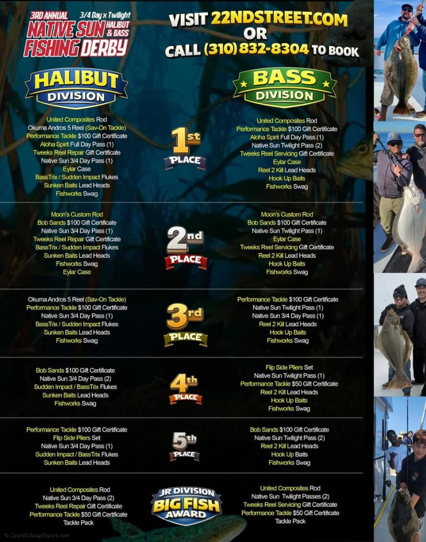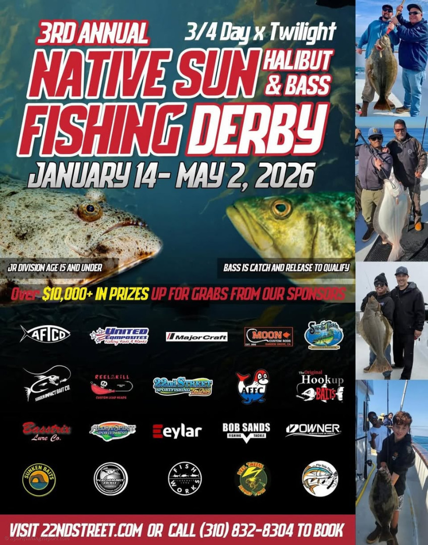 3rd annual Halibut and Bass derby is just a little over a week away from starting! The schedule is live on the site for both 3/4 day and twilight trips starting January 14th. Be sure to check out our sponsors pages or in person at a retail location. Without them this wouldn’t be possible. See ya soon!