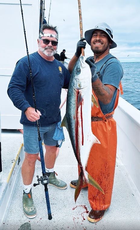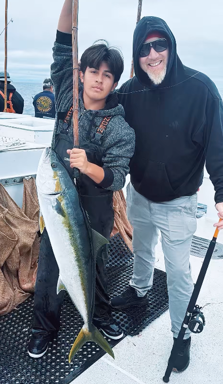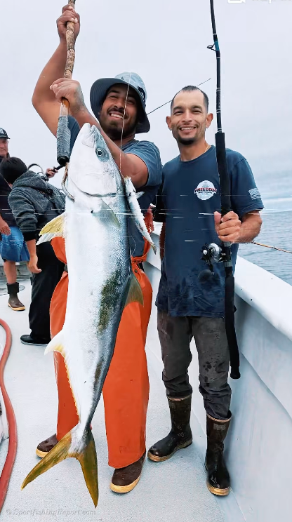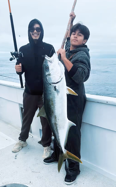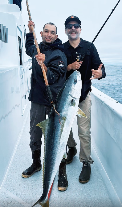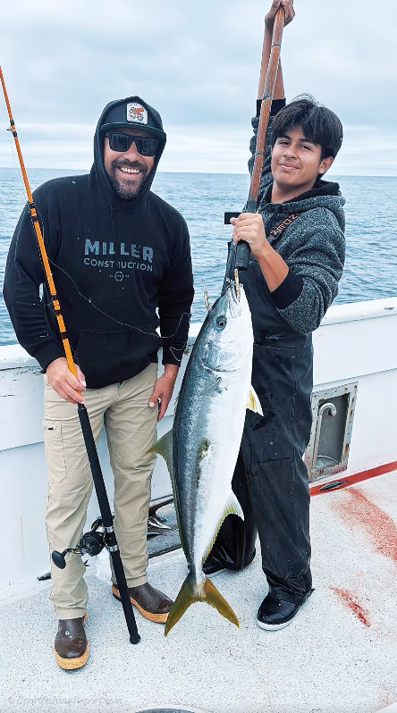 After we finished on the deeper rockfish, we slid into the shallows, dropped the anchor, started a chum line, and the yellowtail showed up quick. We ended up going **11 for about 21 hookups** on the yellows.
